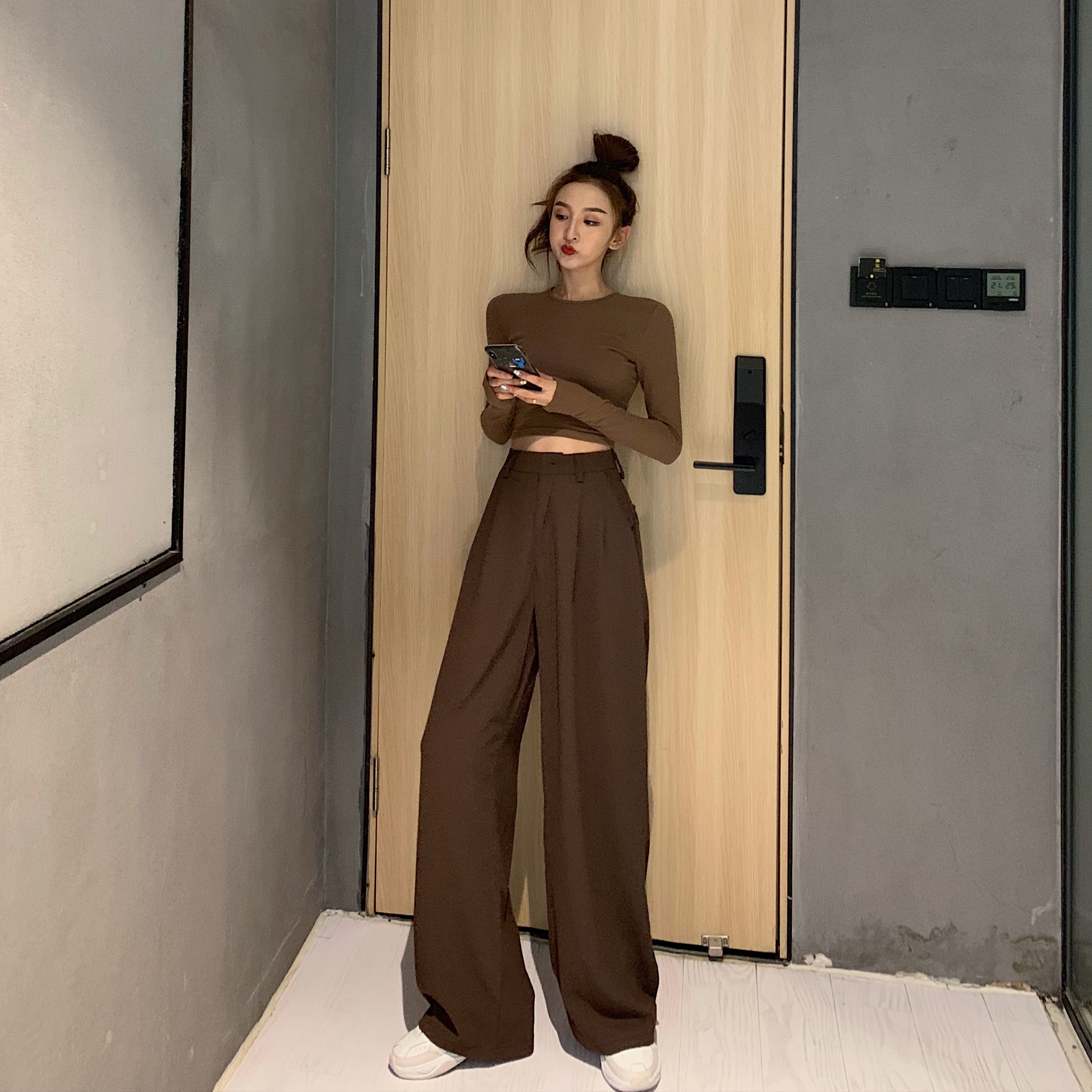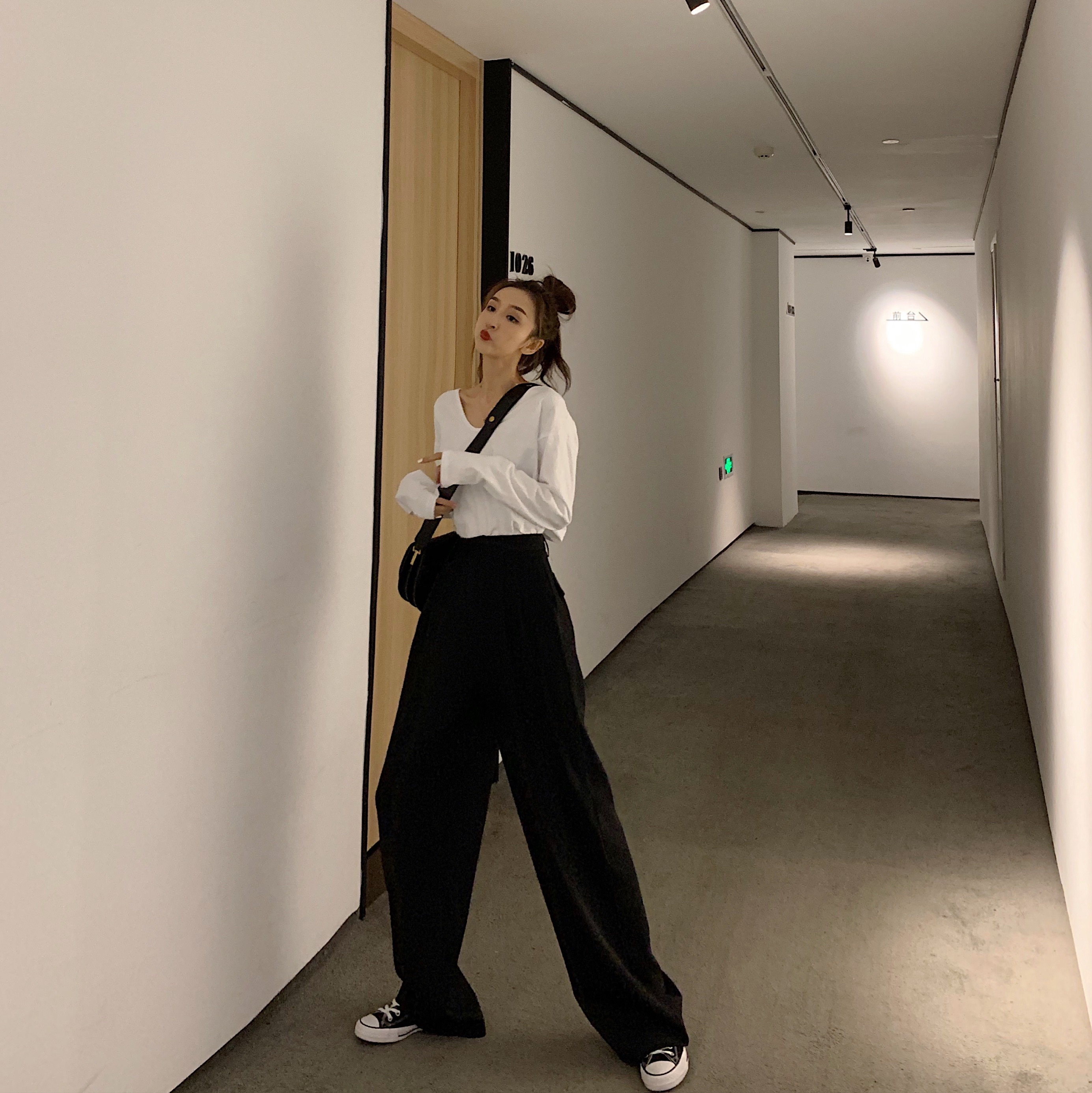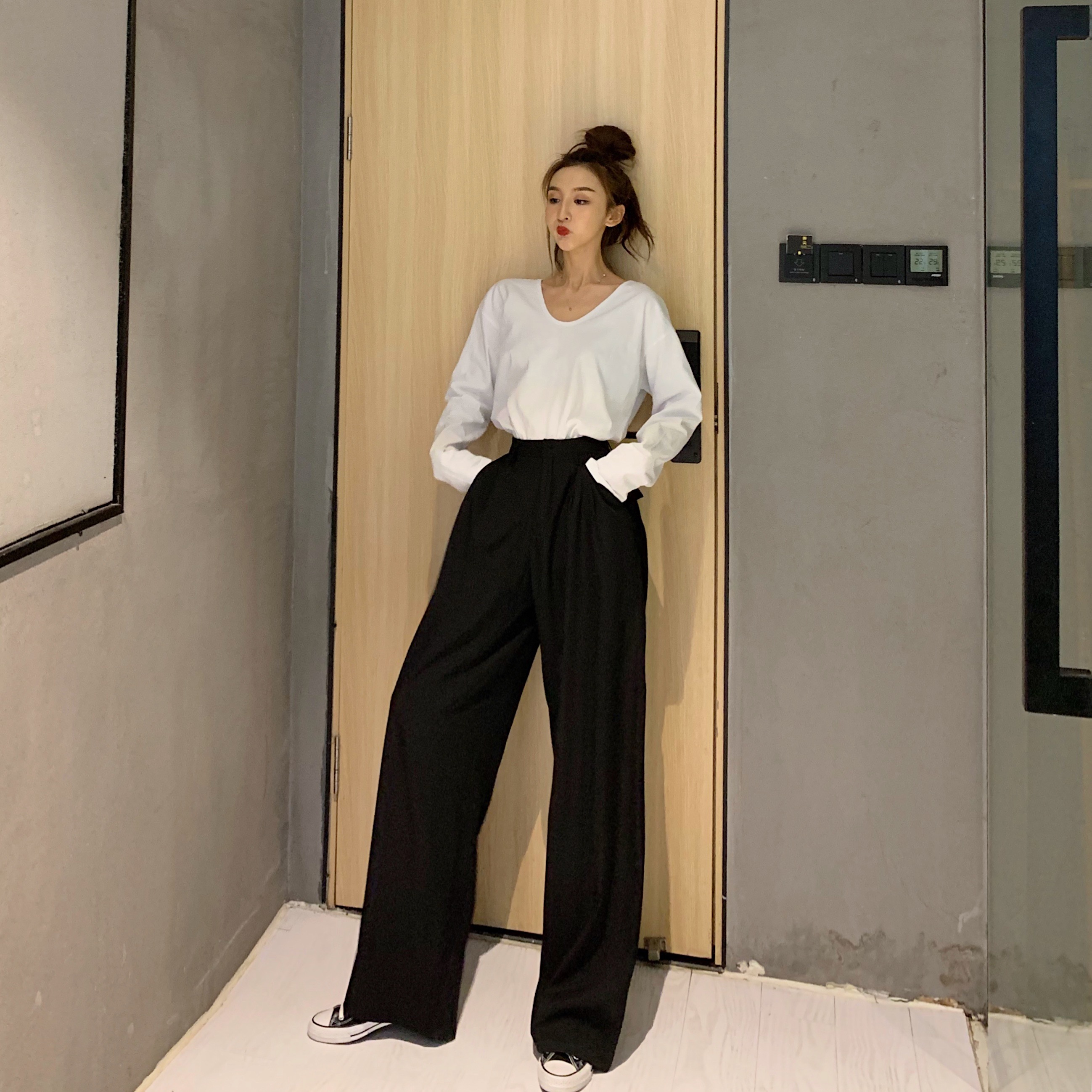 風百搭闊腿高腰直筒長褲寬松休閑褲子女2019夏新款1入