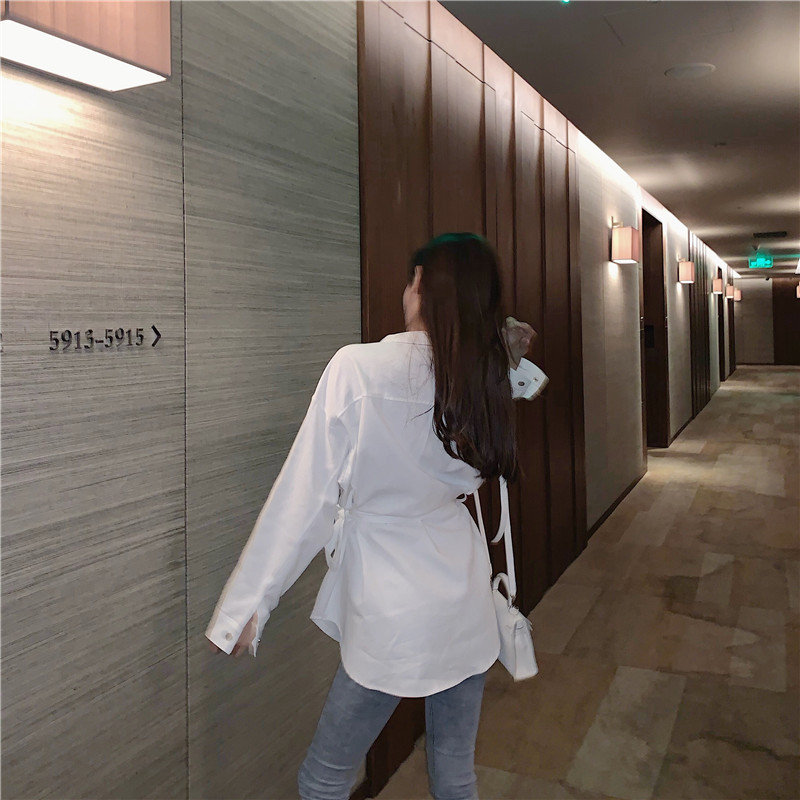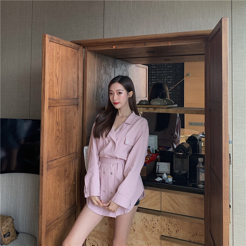 風韓版氣質系帶雙排扣寬松風衣外套女2019秋冬新款1入