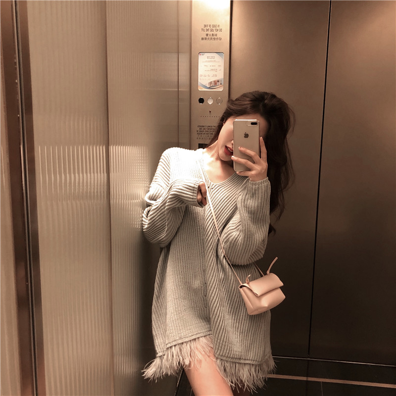 風馬海毛V領套頭毛邊設計秋冬百搭毛衣女寬松外穿1入