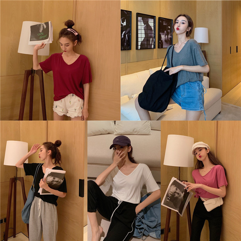 風基礎款夏季短袖t恤女百搭寬松顯瘦韓版上衣女20191入