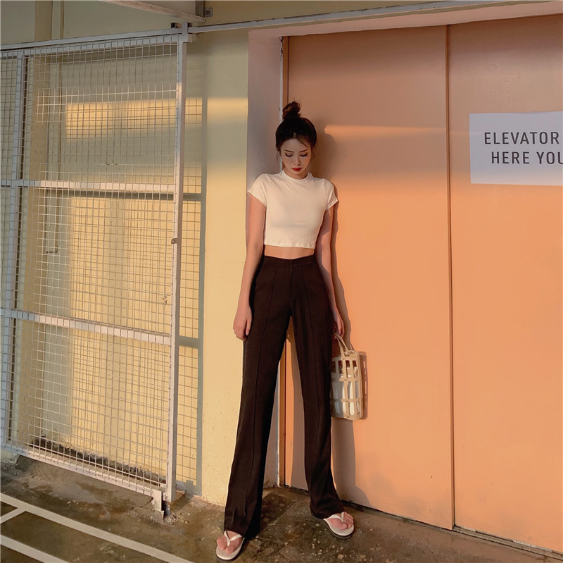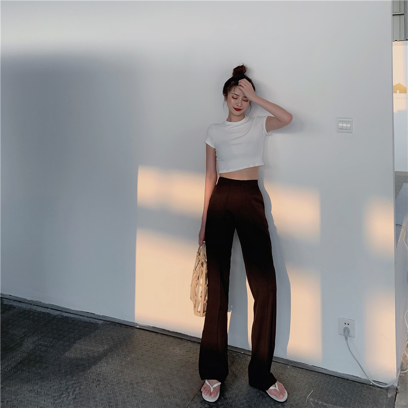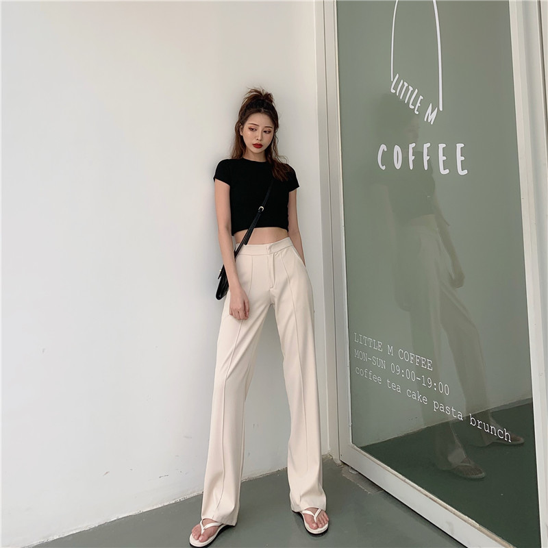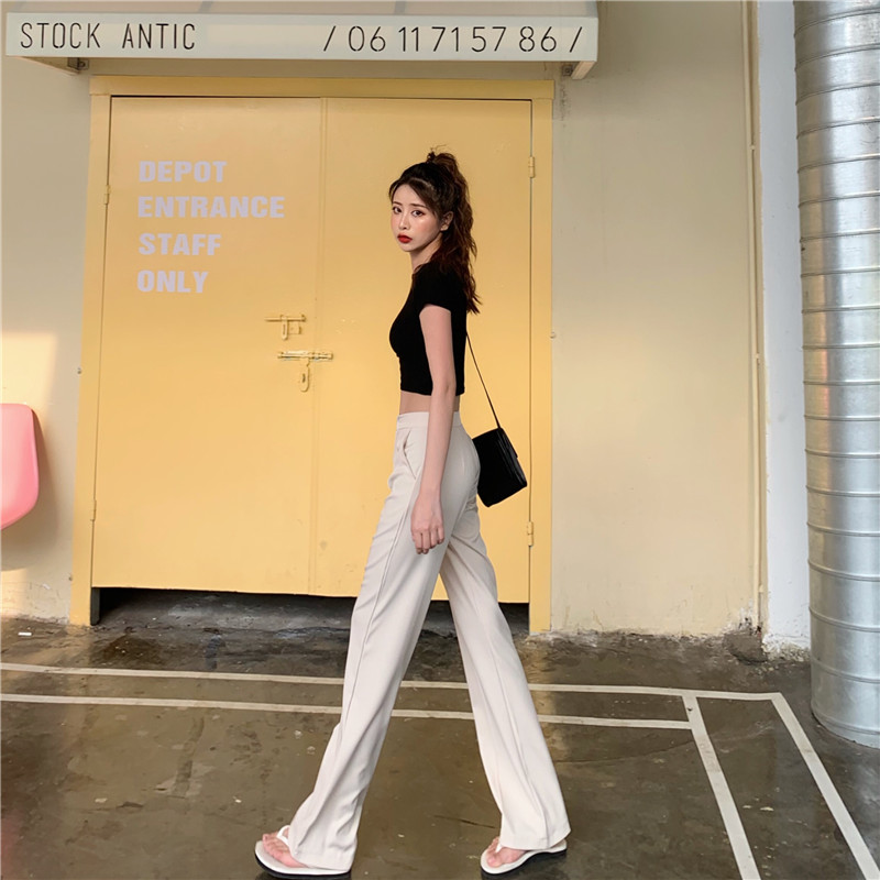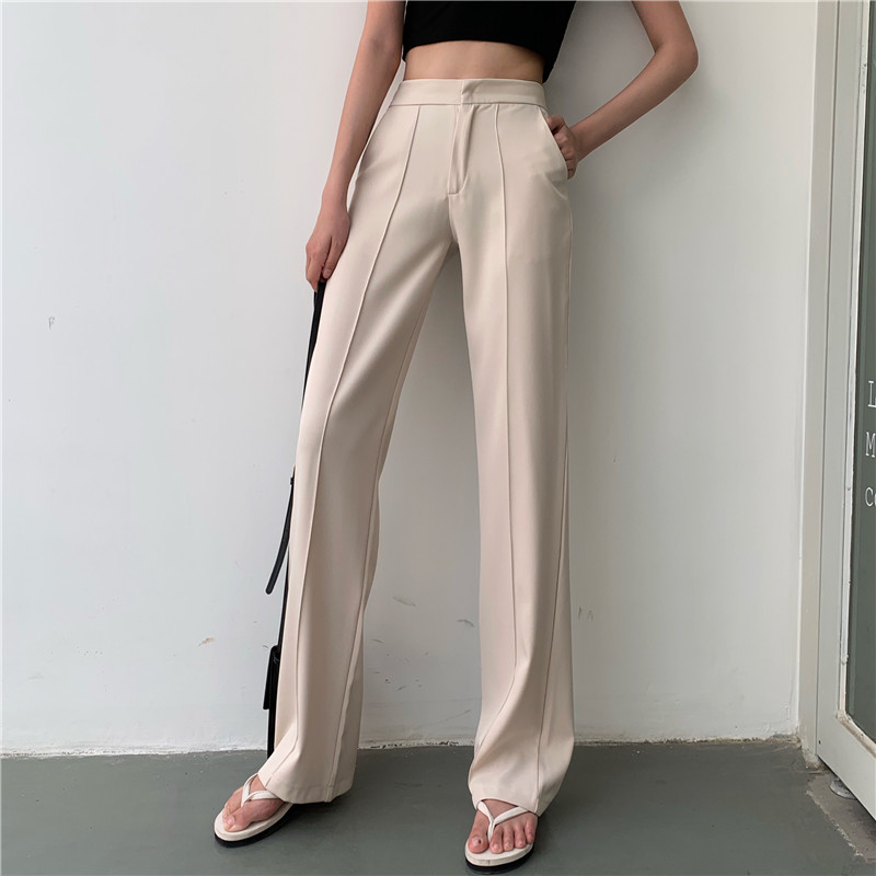 風休閑褲女夏季新款韓版高腰拖地褲直筒微喇叭長褲1入