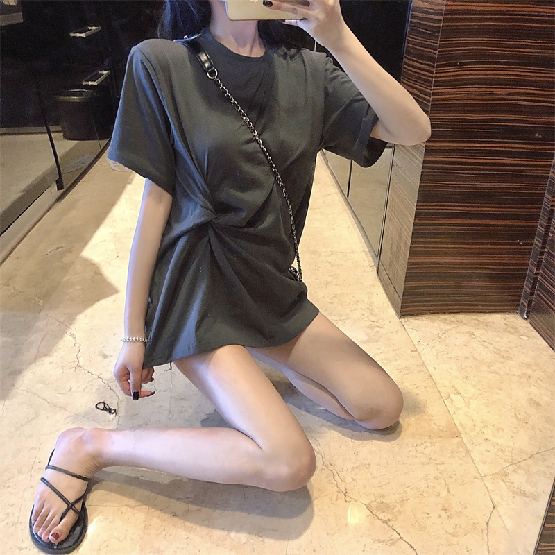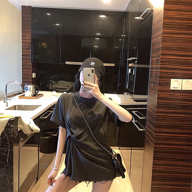 風短袖t恤女寬松百搭設計感扭結上衣2019夏季新款1入