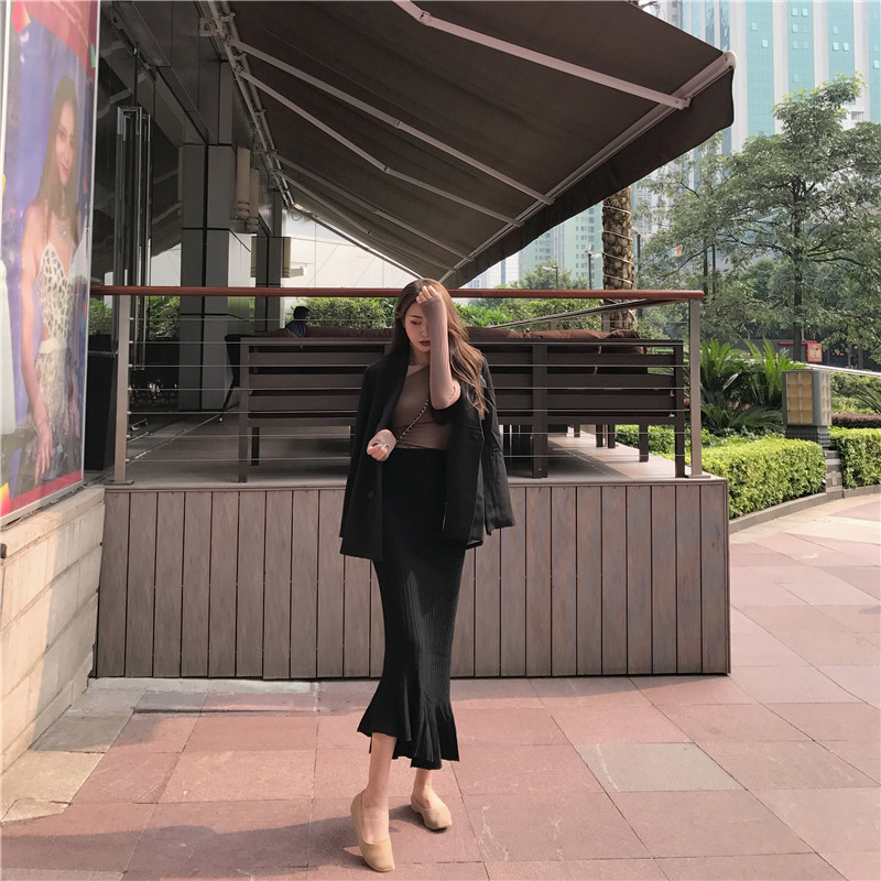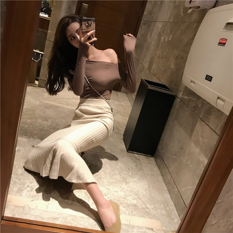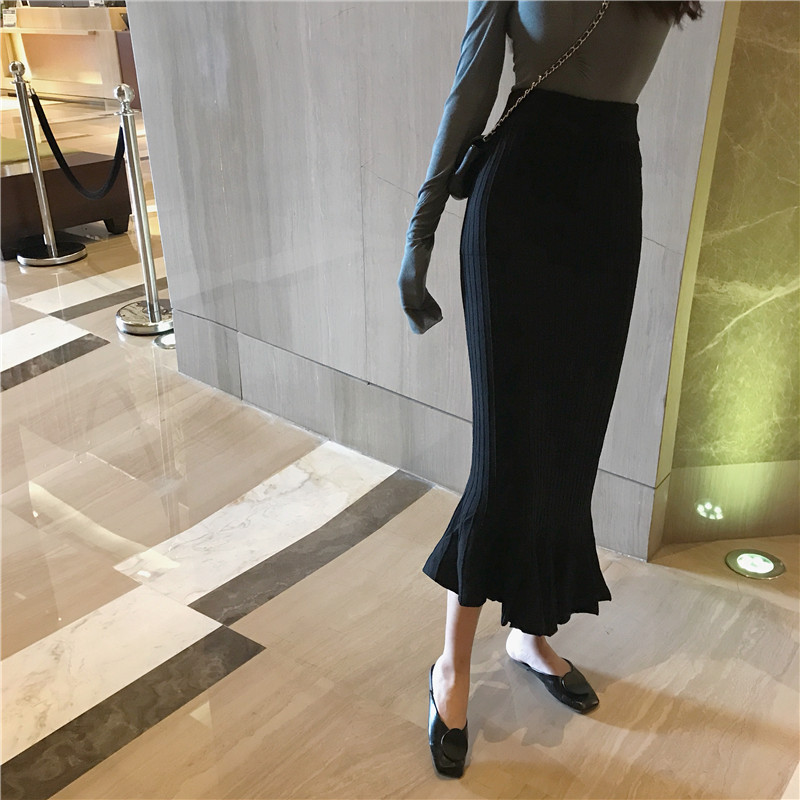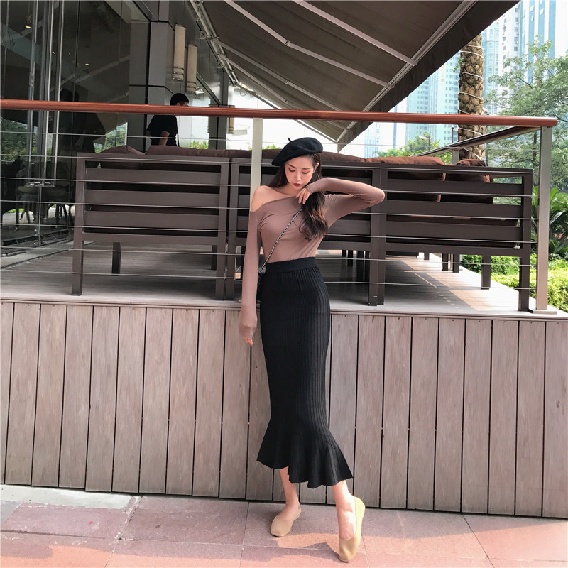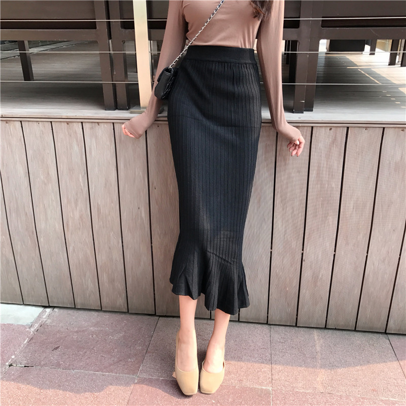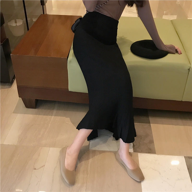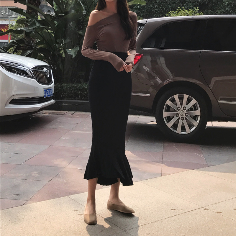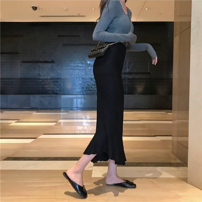 韓版百搭修身中長款斜魚尾半身裙女1入