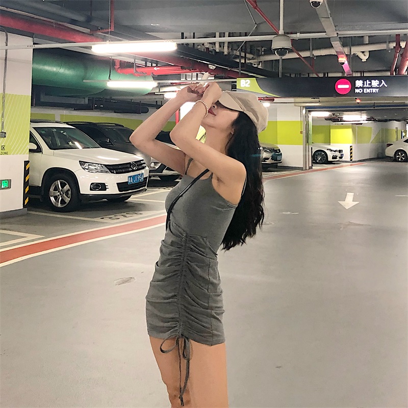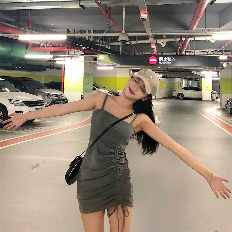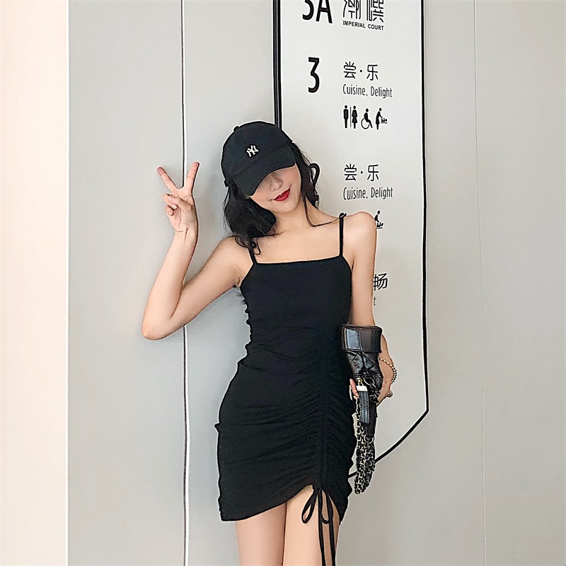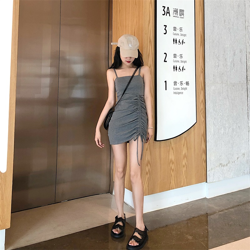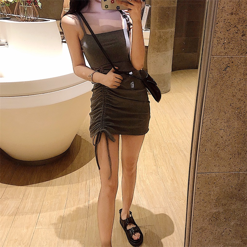 風修身顯瘦吊帶連衣裙不規則抽繩內搭包臀短裙女1入