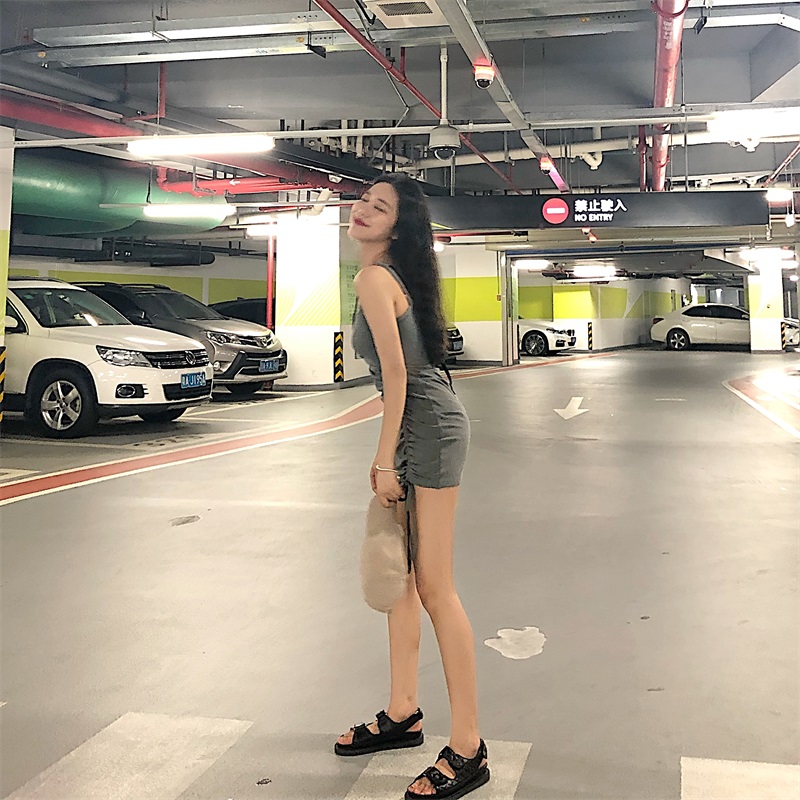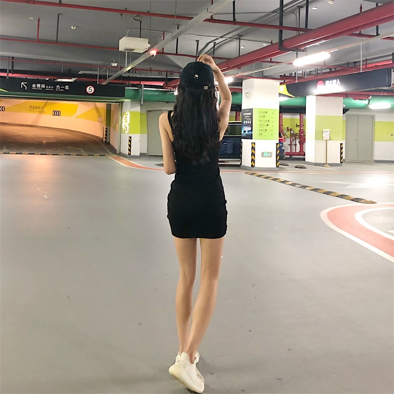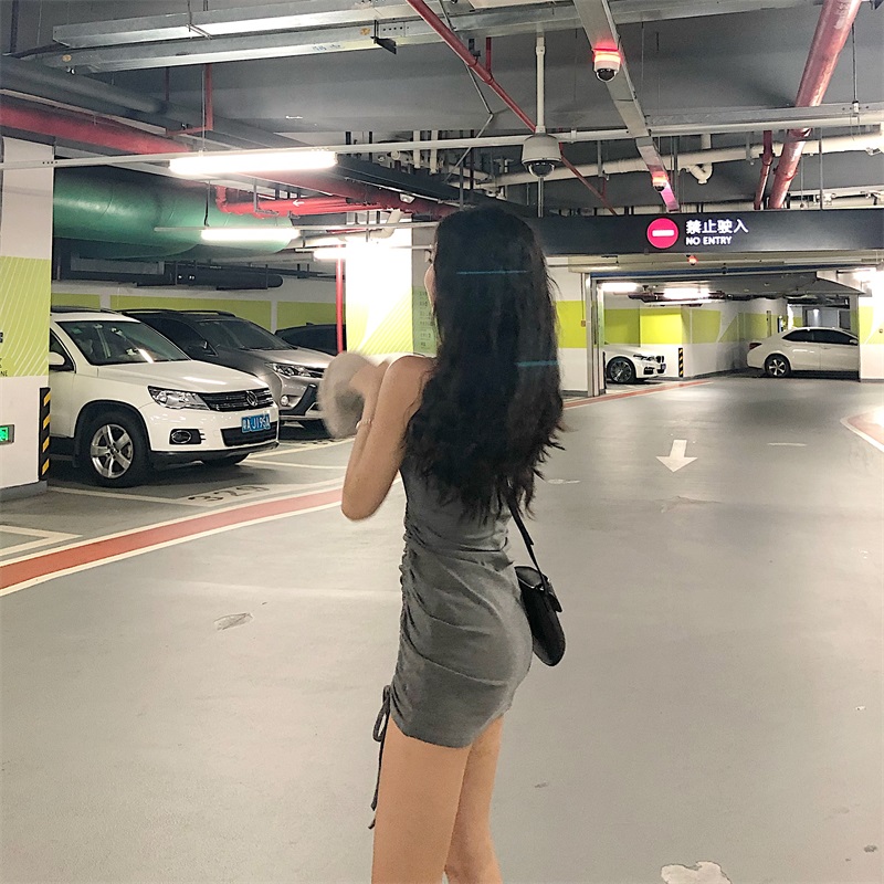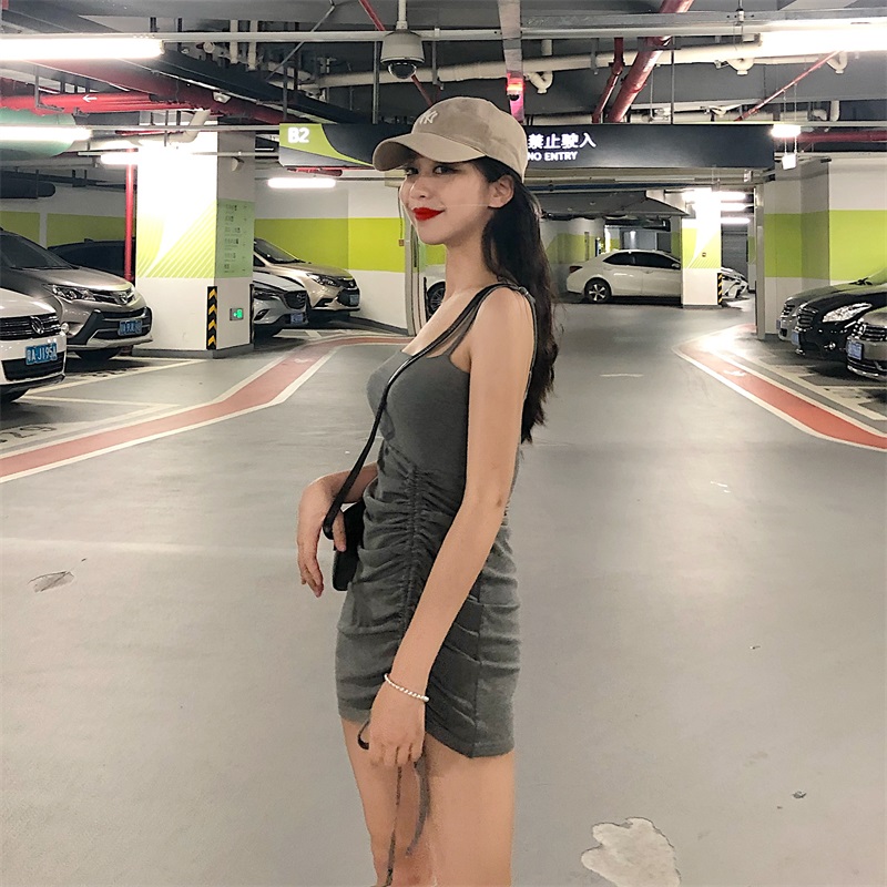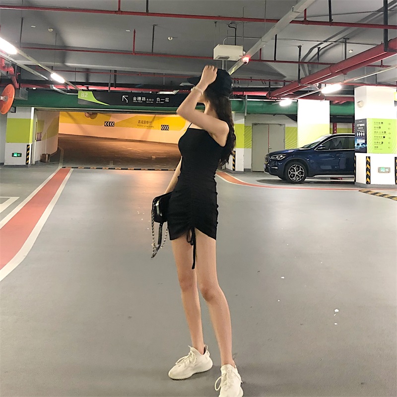 風修身顯瘦吊帶連衣裙不規則抽繩內搭包臀短裙女1入