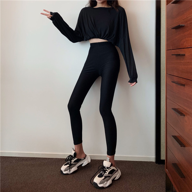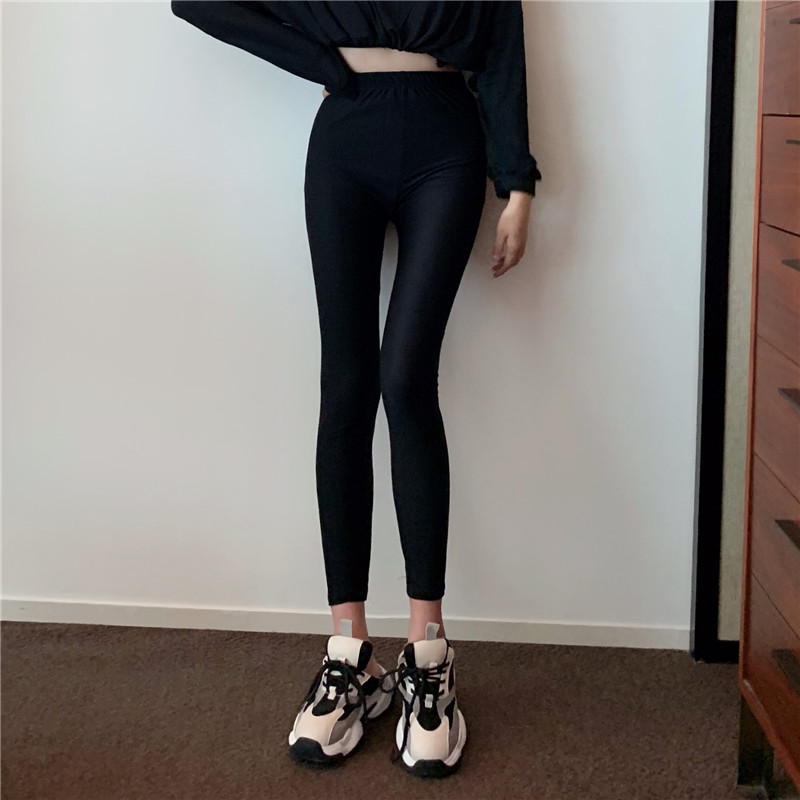 2019秋季薄款冰絲打底褲女顯瘦彈力涼涼褲高腰緊身褲1入