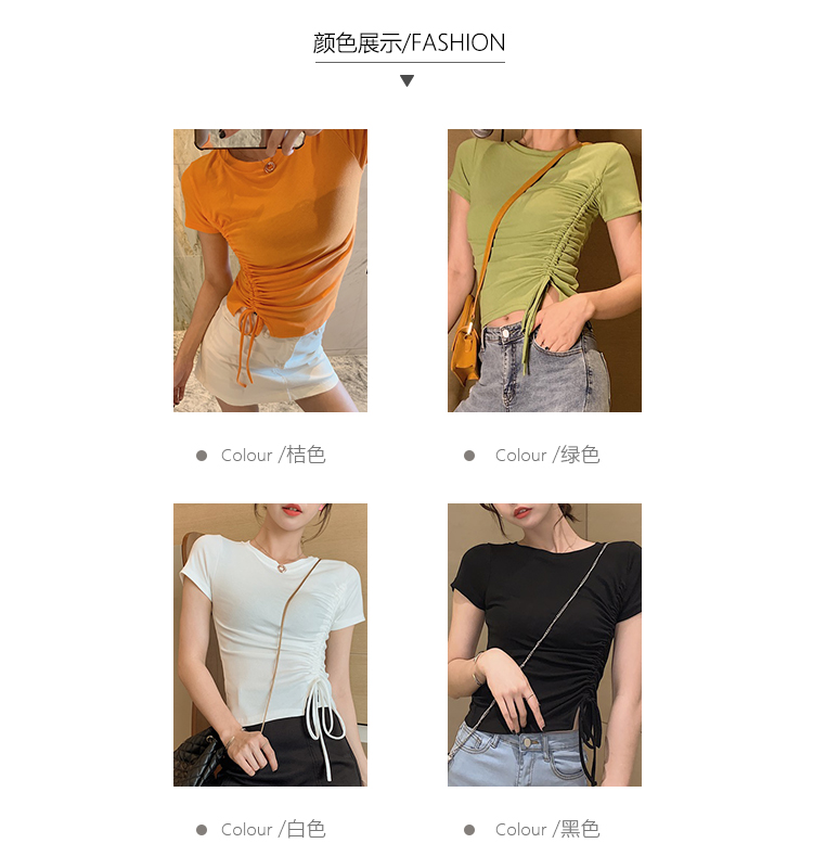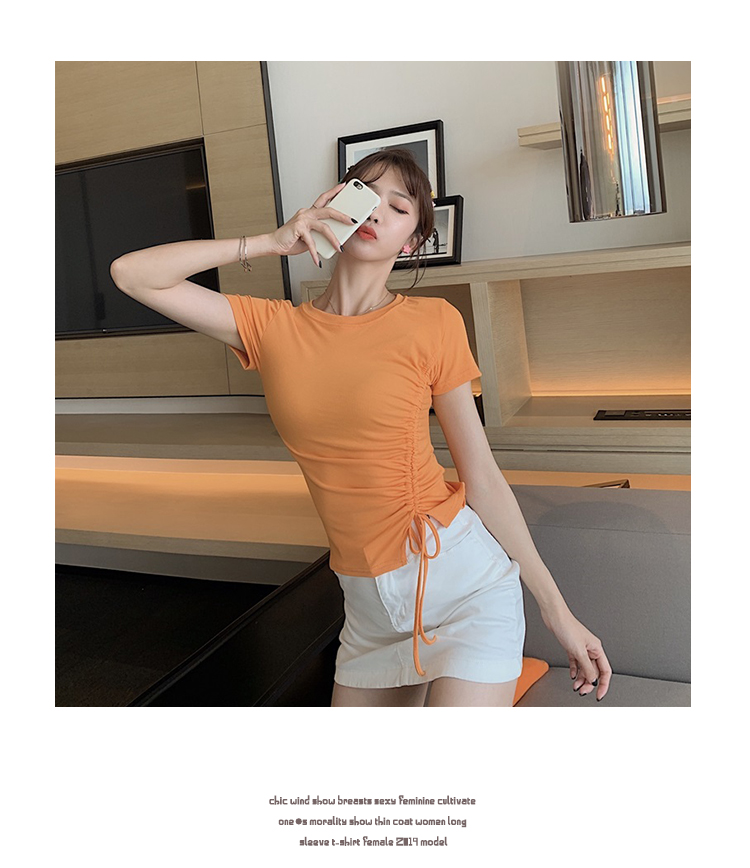 風抽繩短款上衣女2019夏季新款韓版修身百搭短袖T恤1入