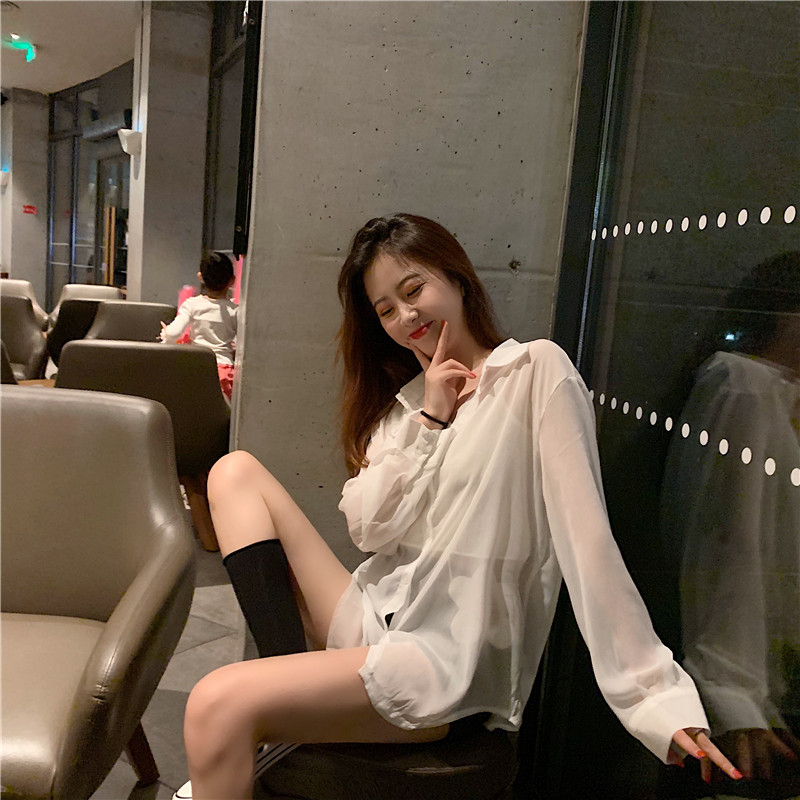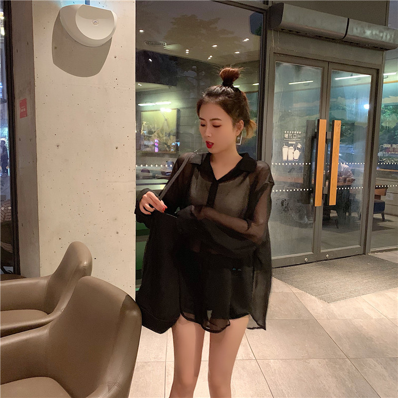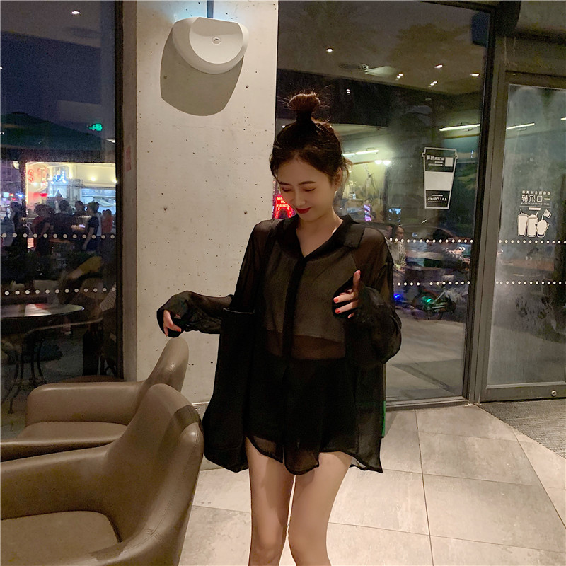 風百搭夏季防曬衫透氣薄款長袖T恤寬松雪紡襯衫女1入
