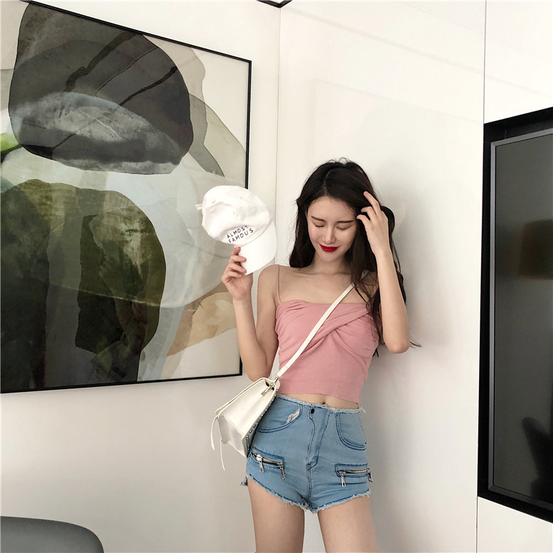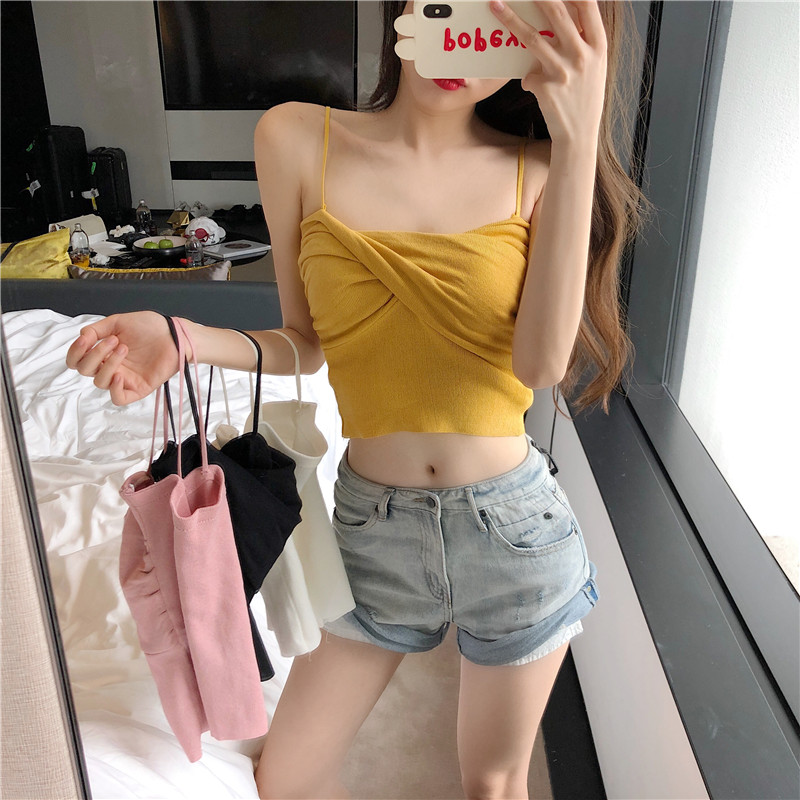 風設計感交叉針織內搭外穿吊帶上衣女2019夏季新款1入