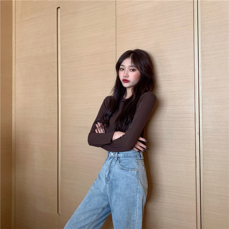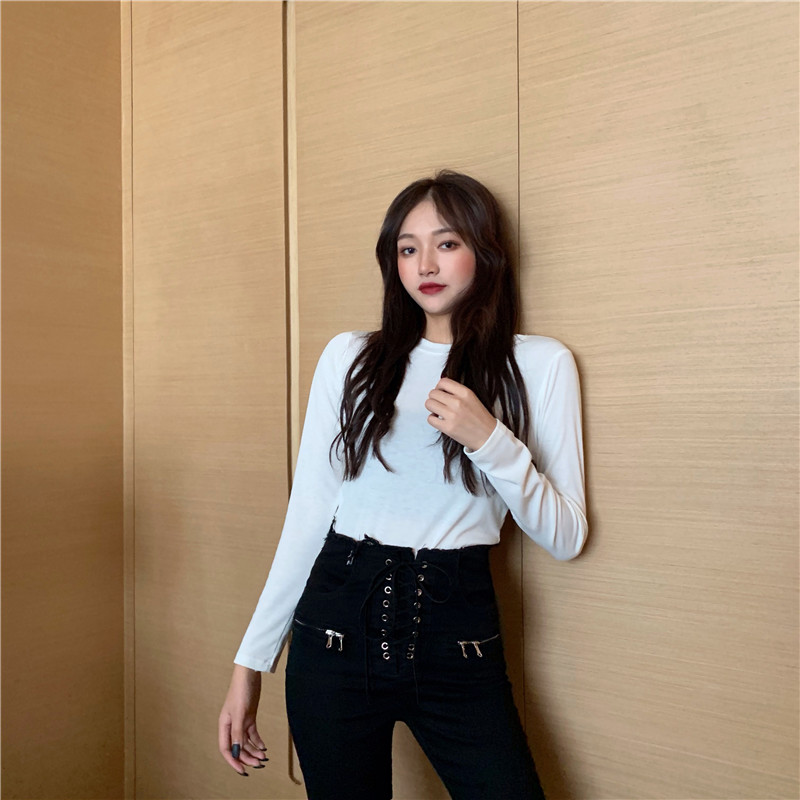 019新款純色圓領修身針織打底泫雅洋氣網紅長袖t1入