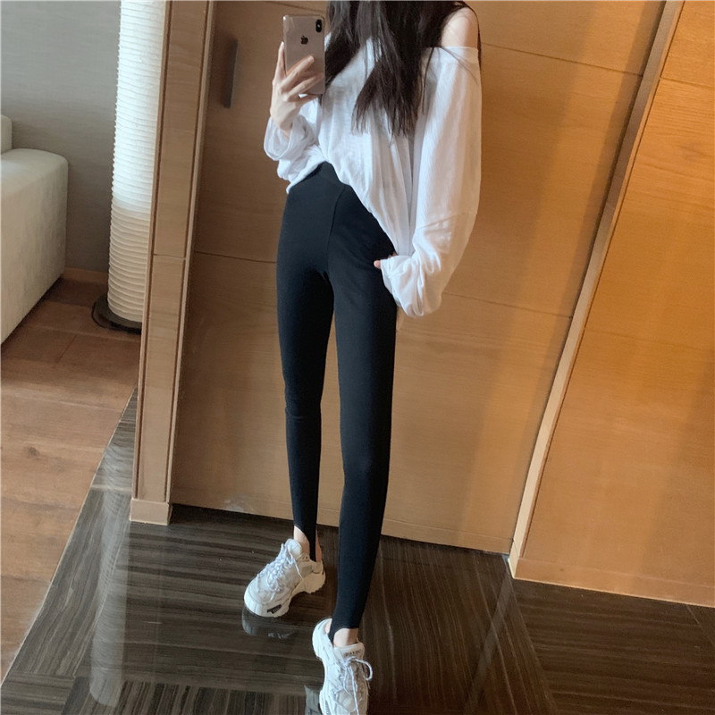 高腰顯瘦彈力緊身褲踩腳褲1入