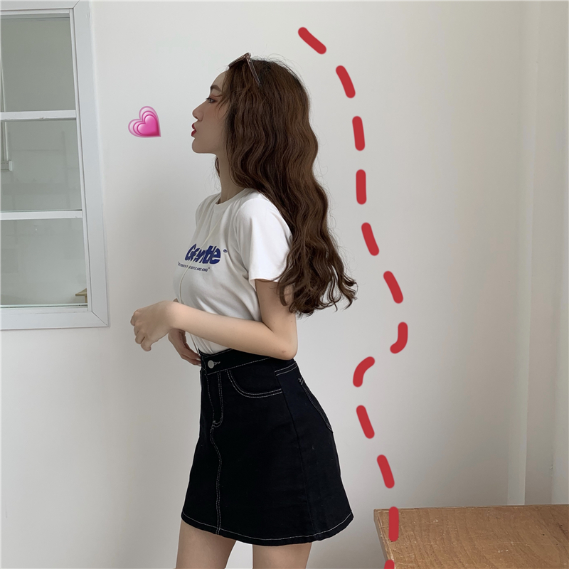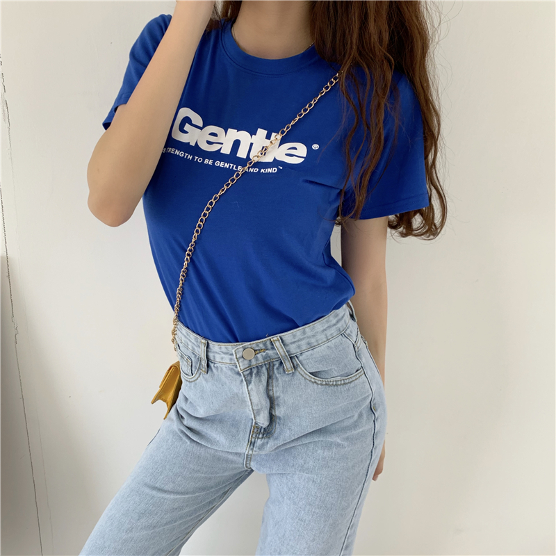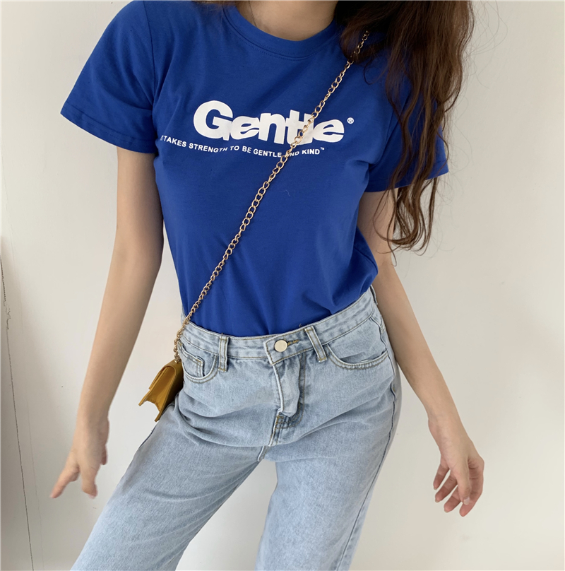 風夏季百搭短款撞色印花露臍短袖T恤女2019新款女裝1入