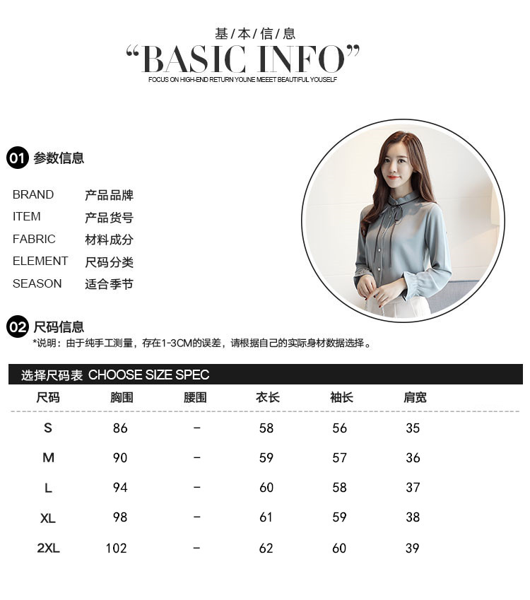 2019秋裝新款韓版OL風長袖雪紡衫女立領細帶雪紡長袖設計感襯衫女1入