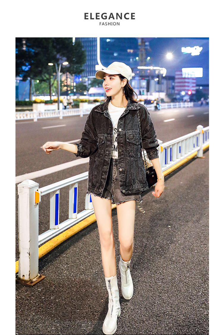 韓版寬松大碼牛仔短外套女秋季2019新款潮流時尚百搭學生上衣女1入