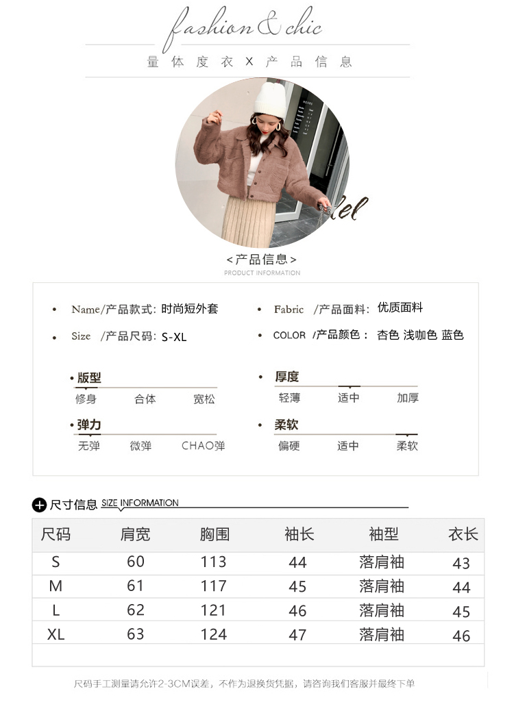 2019秋季新款小個子仿貂毛絨外套女ulzzang短款寬松復古休閑夾克1入