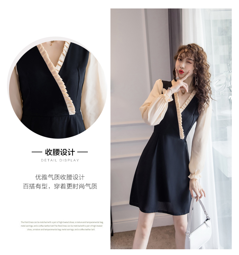 2019新款韓版智熏裙法式桔梗裙秋裝收腰顯瘦復古氣質黑色連衣裙女1入