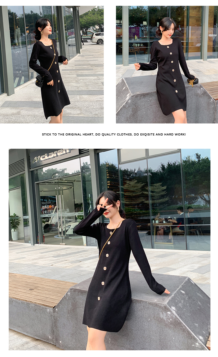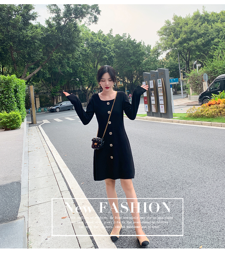 2019秋裝新款連衣裙女套頭針織衫顯瘦中長款打底裙牛油果綠打底衫1入