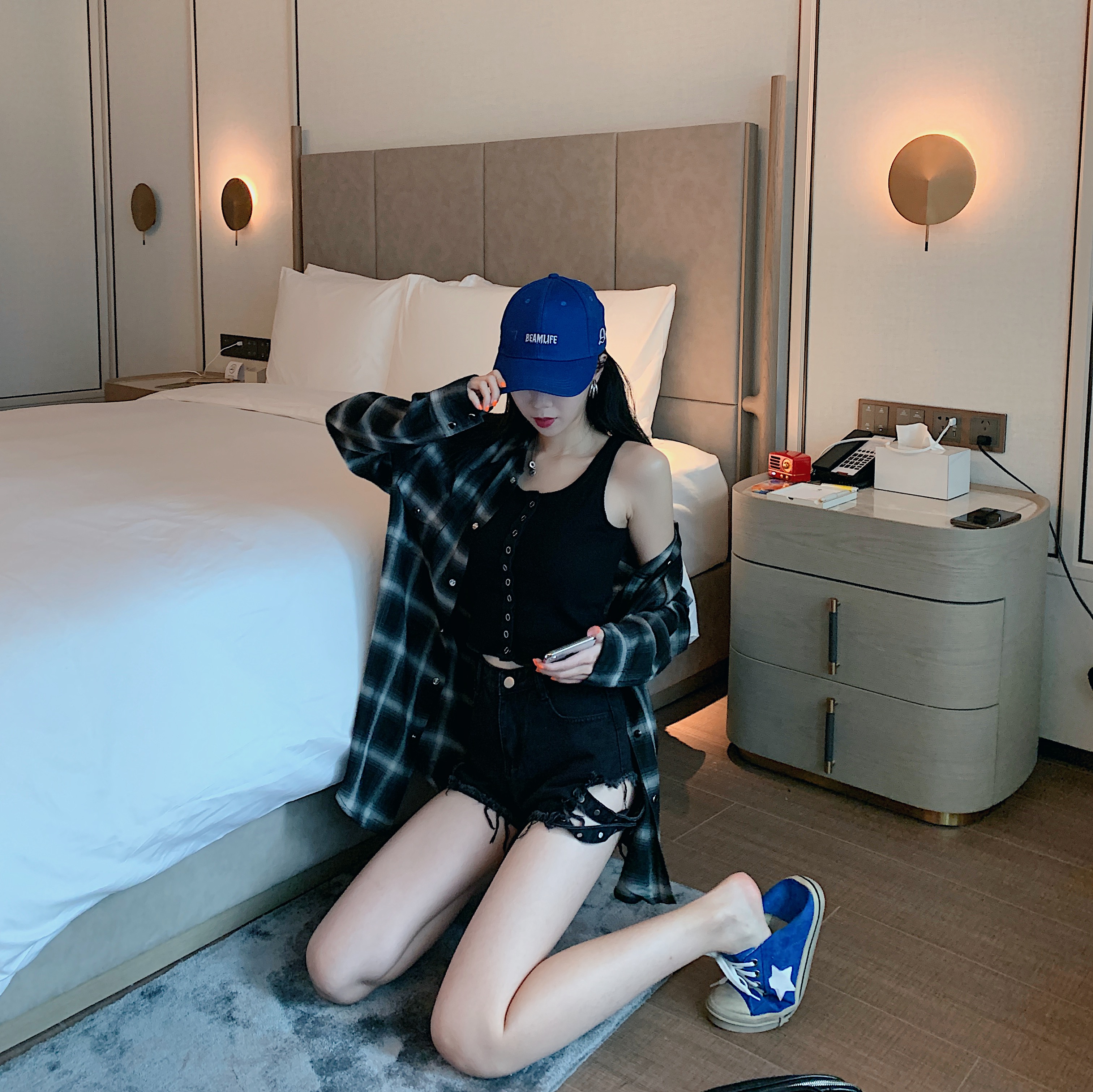 2019秋季新款格子BF網紅百搭炫酷襯衣寬松顯瘦長袖襯衣網紅女1入