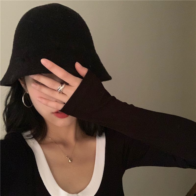雙色t恤女2019秋冬新款韓版撞色圓領上衣修身顯瘦體恤百搭打底衫1入