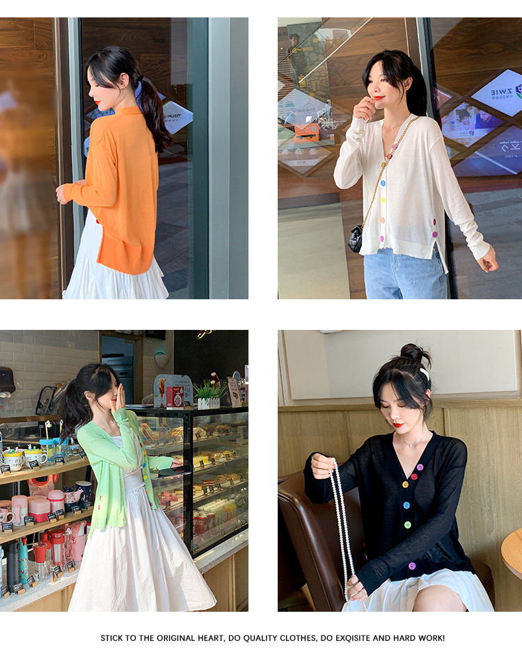 針織衫2019新款秋季 冰絲外搭開衫長袖空調防曬外套舒適寬松罩衫1入