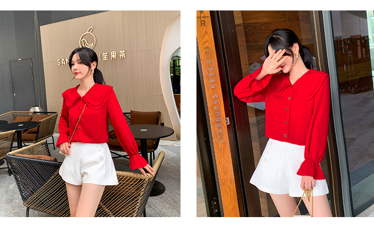 襯衫女秋2019新款韓版修身時尚長袖氣質淑女荷葉領雪紡衫上衣襯衣1入