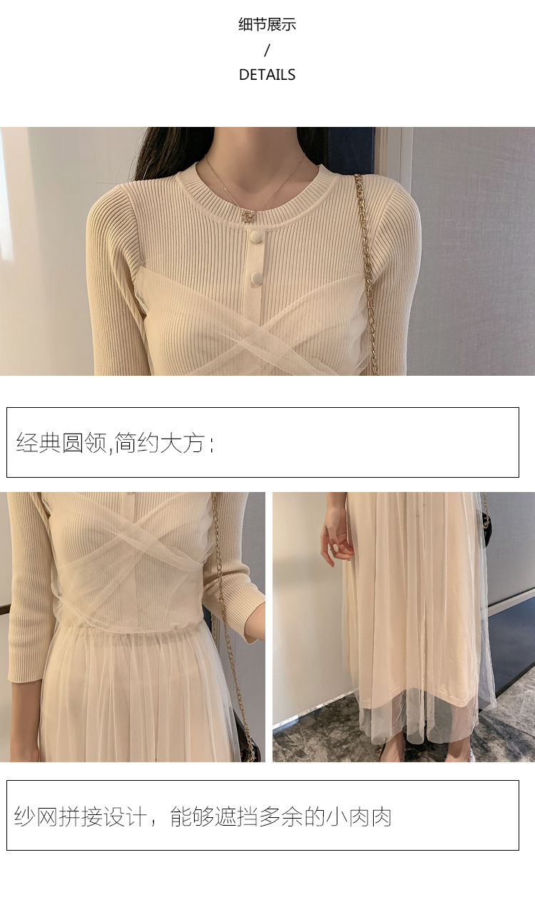 連衣裙2019新款秋季 超仙法式網紗拼接針織裙子女小眾中長款裙女1入