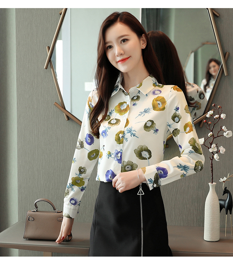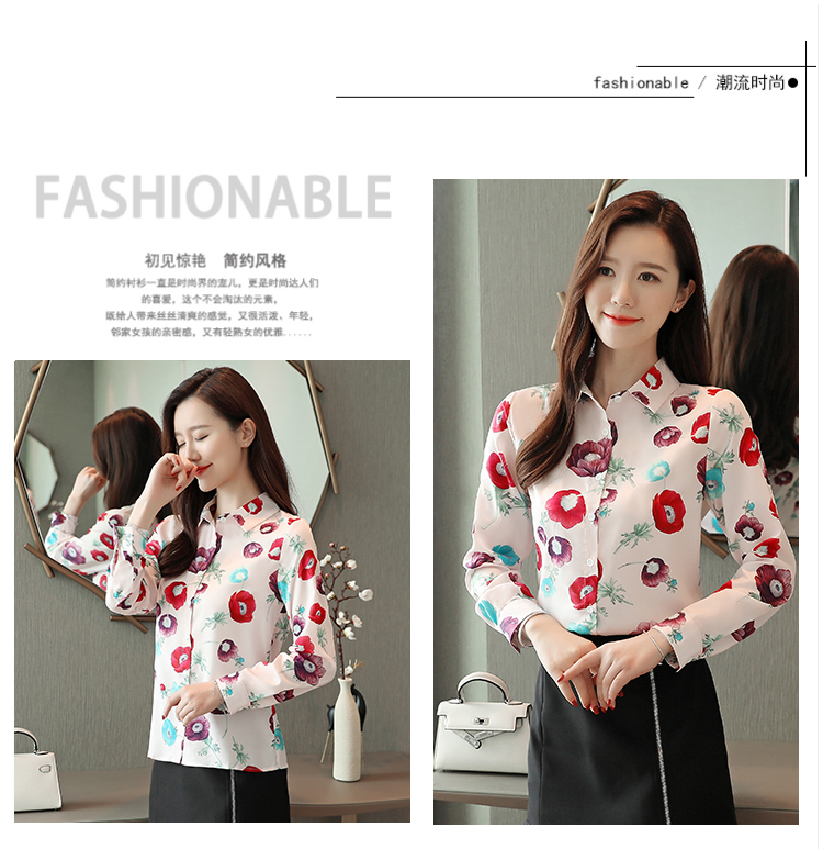 [2]OL風職業襯衫女2019秋裝新款韓版女裝上衣長袖袖印花雪紡衫女襯衣1入