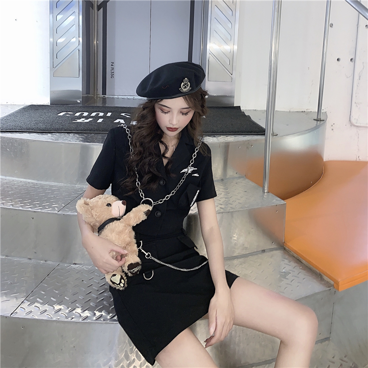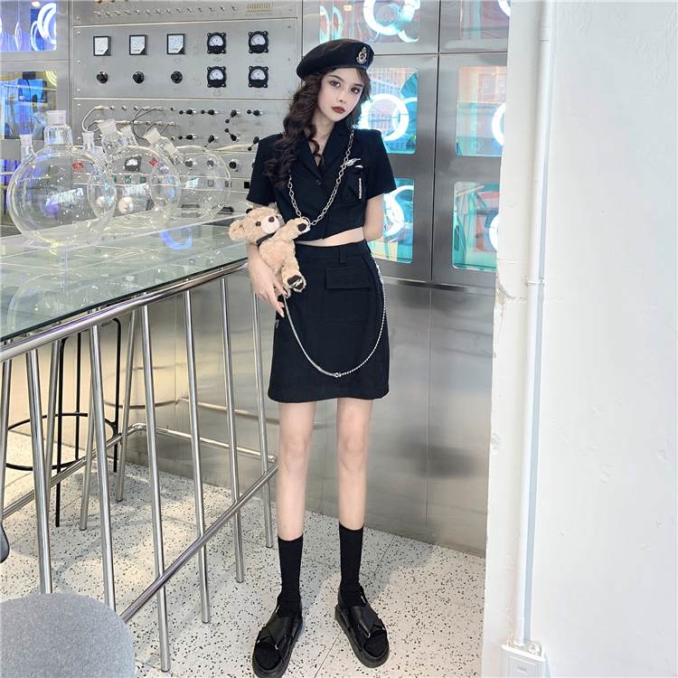 韓版黑色氣質顯瘦套裝短款小衫半身裙款西裝裙套裝網紅秋季女1入