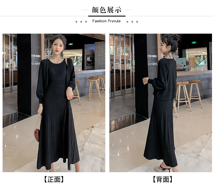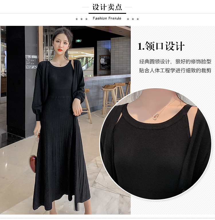 連衣裙2019新款秋季 復古法式百褶韓版針織開衫吊帶簡約時尚套裝1入