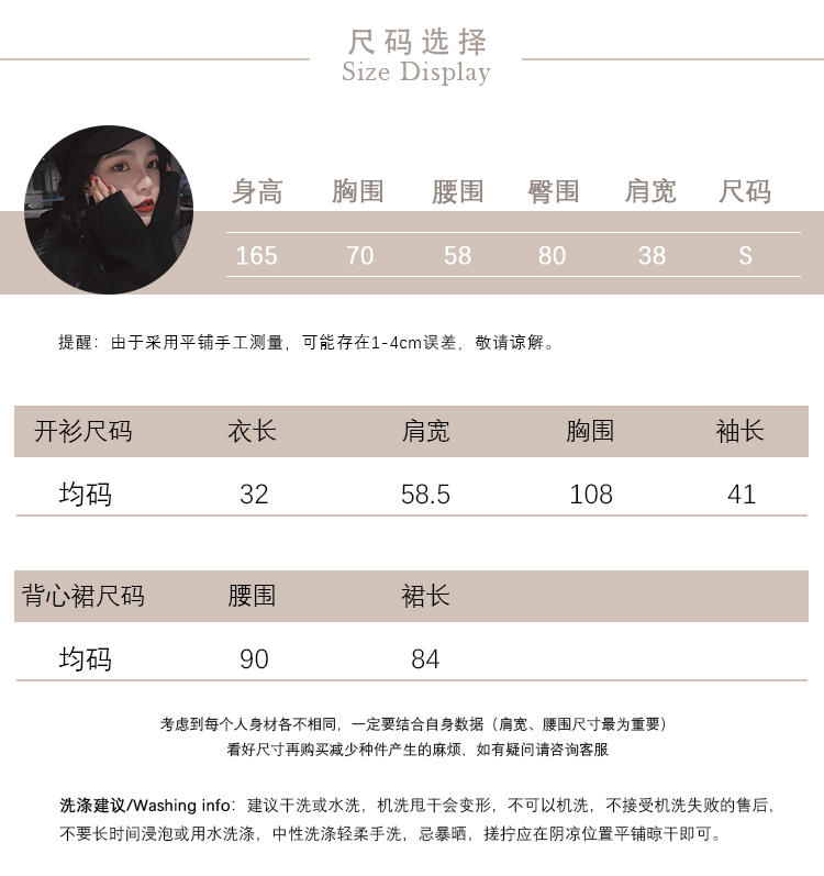 2019秋裝潮流新款針織百搭背心連衣裙兩件套毛衣裙子時髦顯瘦套裝1入