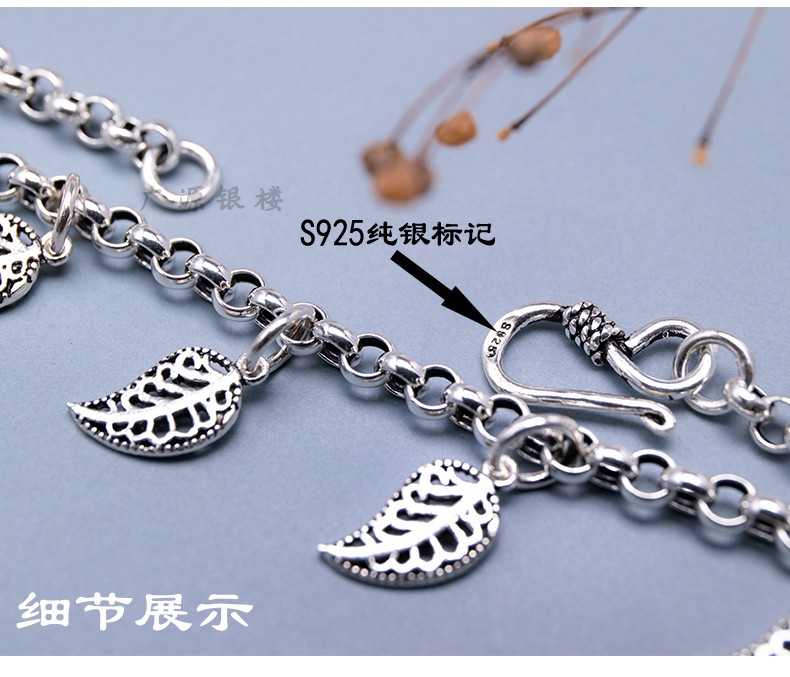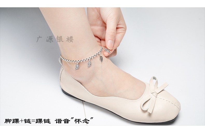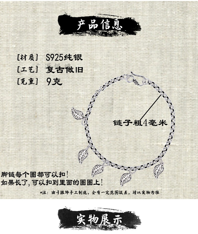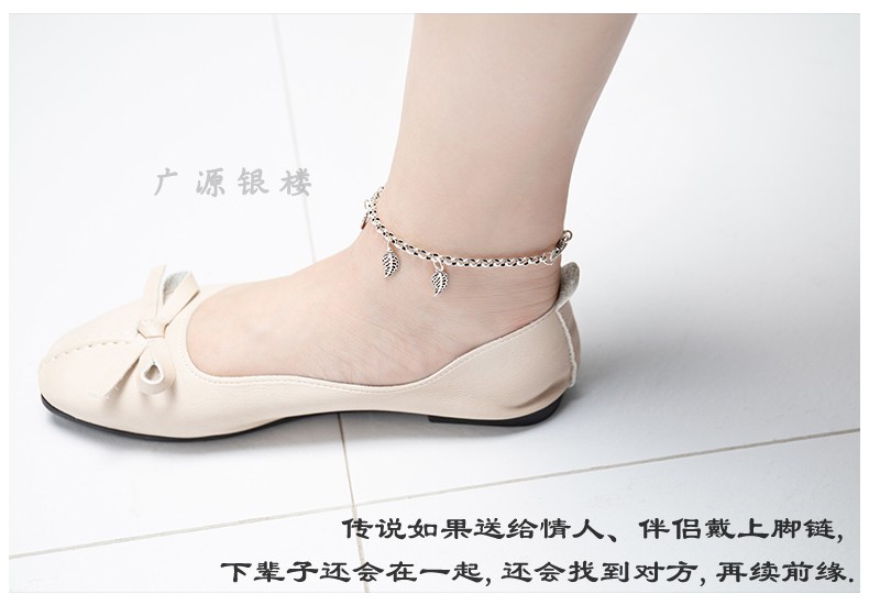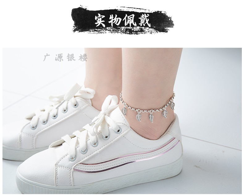 韓版腳鏈男女925純銀腳踝鏈簡約學生時尚小清新樹葉子腳鏈送閏密1入