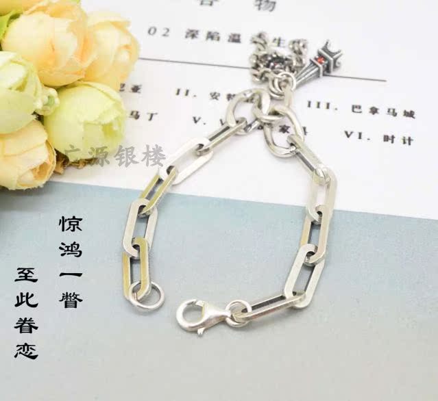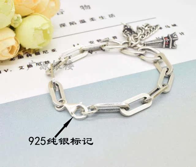 韓國東大門925純銀做舊手鏈粗橢圓環手鏈女首飾時尚個性送生日1入