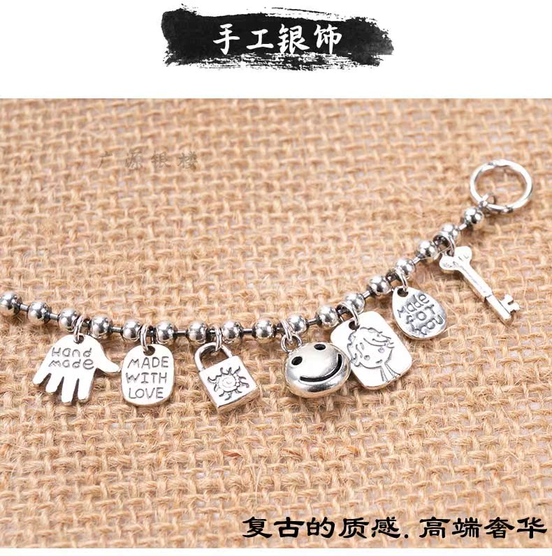 韓國東大門 鑰匙笑臉圓牌手鏈女925純銀泰銀做舊復古OT扣個性潮流1入