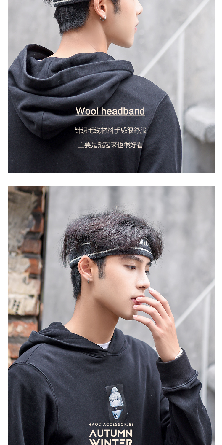 韓版潮人街頭運動吸汗男頭帶護額頭套籃球針織頭巾束發帶街舞頭戴1入