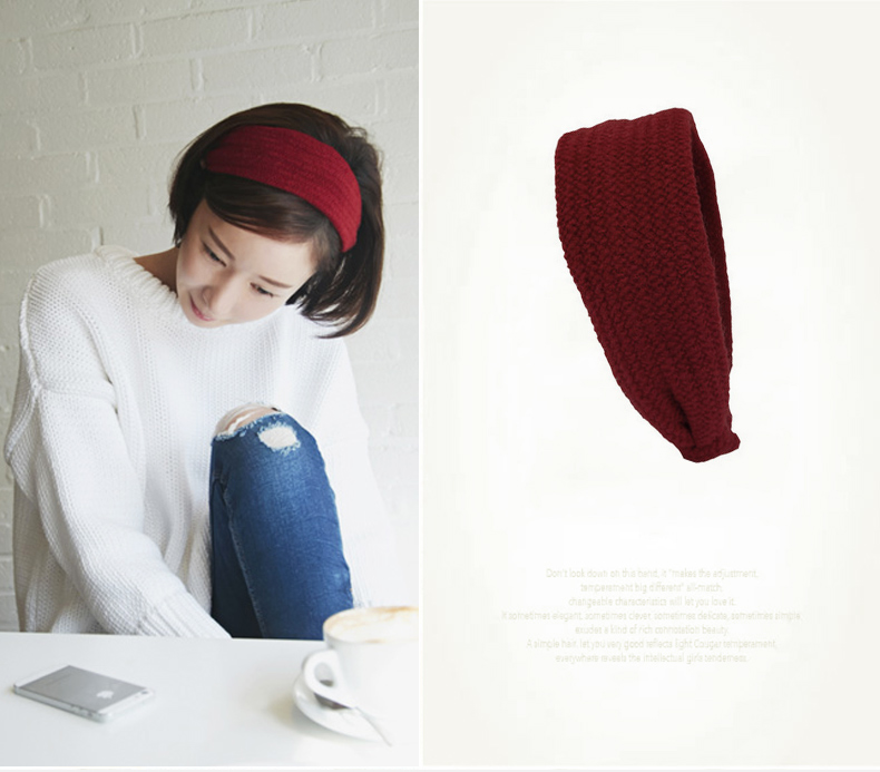 韓國手工針織毛線編織女寬邊發箍潮百搭成人甜美氣質簡約發卡頭飾1入