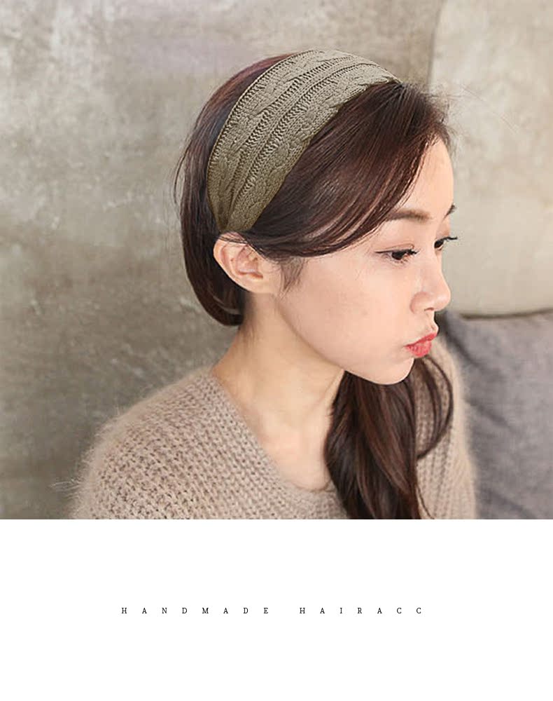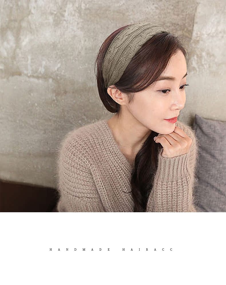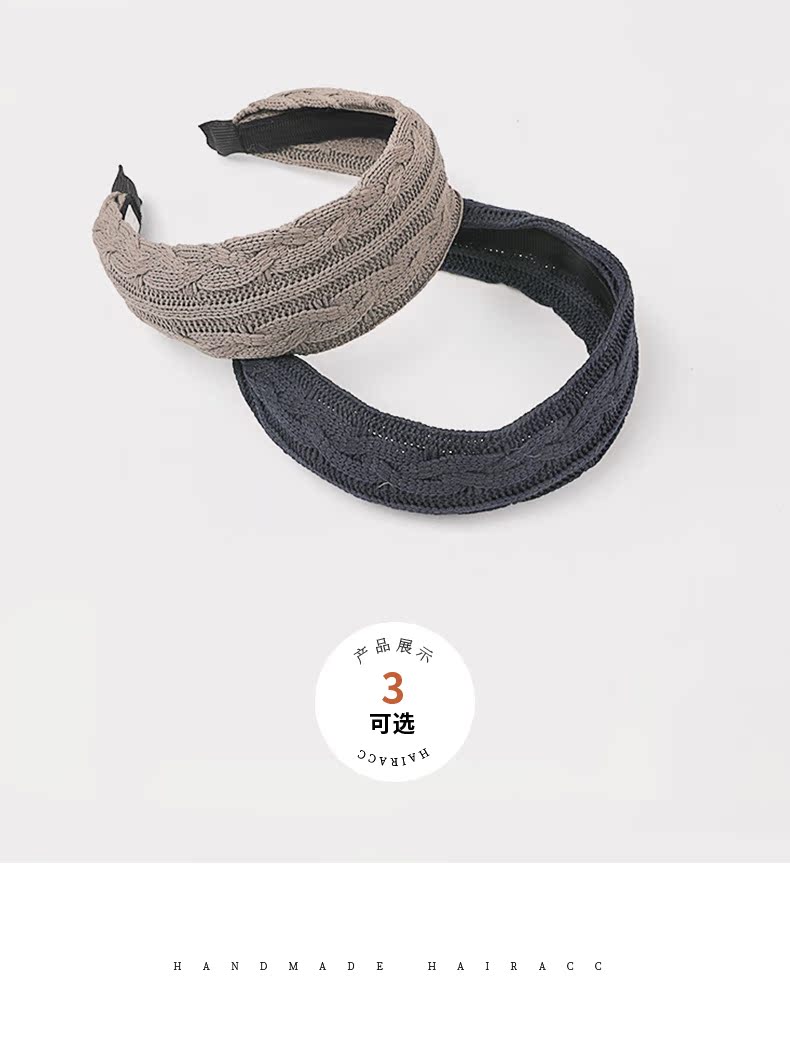 韓國百搭簡約發箍女毛線針織復古氣質洗臉頭箍壓發防滑窟頭飾發卡1入