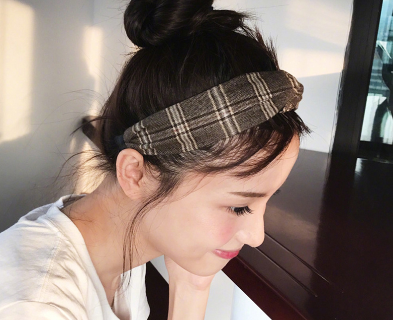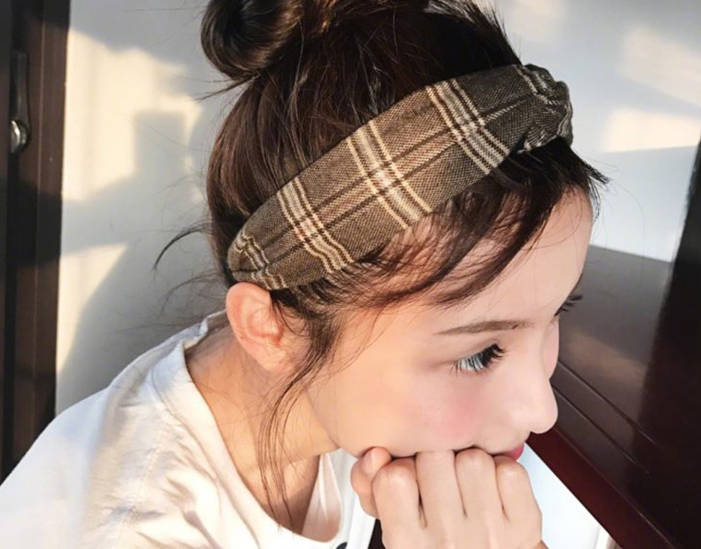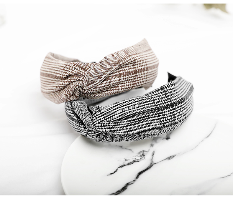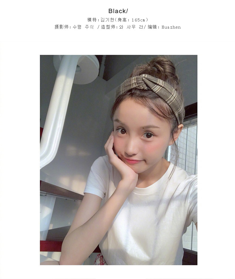 韓國簡約中間打結發箍日韓版發飾頭飾時尚網紅格子頭箍發卡夏氣質1入
