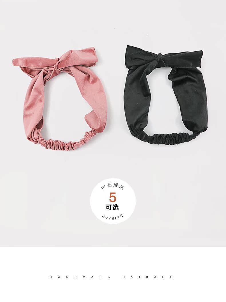 韓式優雅仙女蝴蝶結發帶 簡約單色秋冬呢絨發圈外出百搭洗臉頭飾1入
