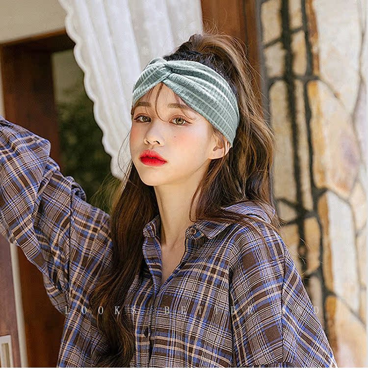 韓國潮流女生發飾 簡約運動時尚氣質發帶ins健身吸汗寬邊束發帶1入