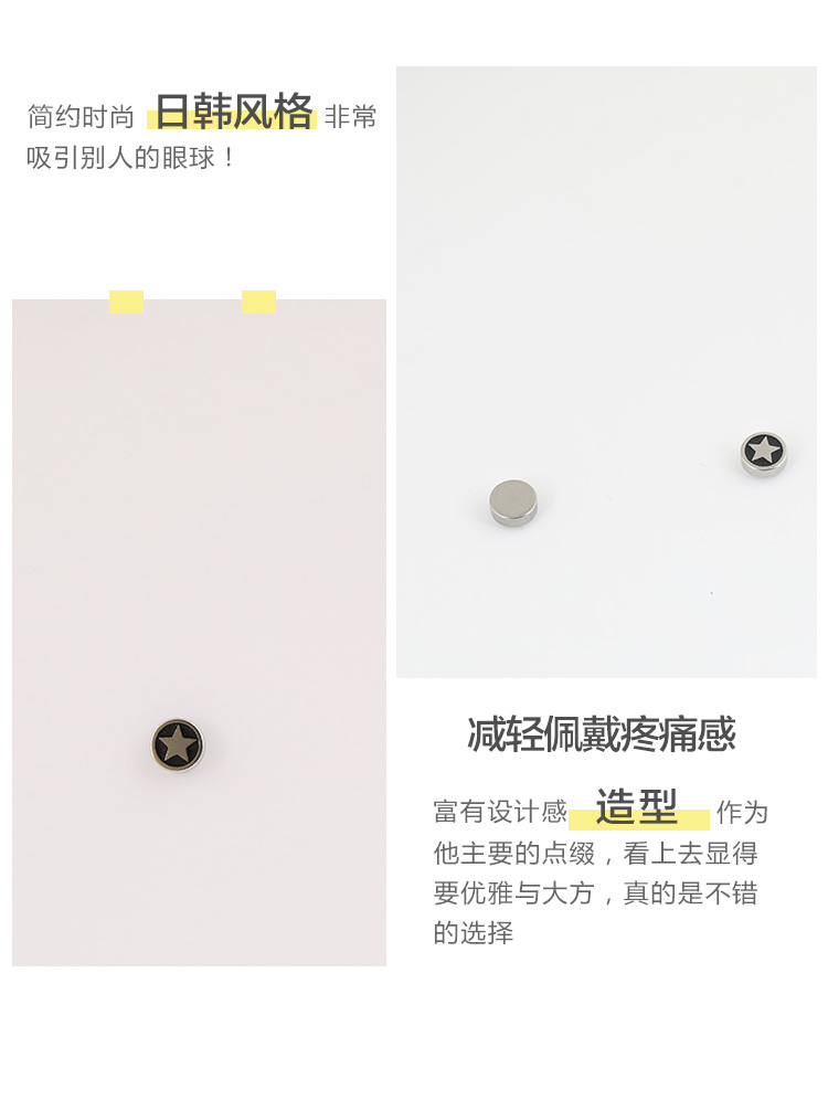 2019韓版男生耳飾 韓國無耳洞磁石耳釘銀色氣質潮男耳夾時尚耳環1入