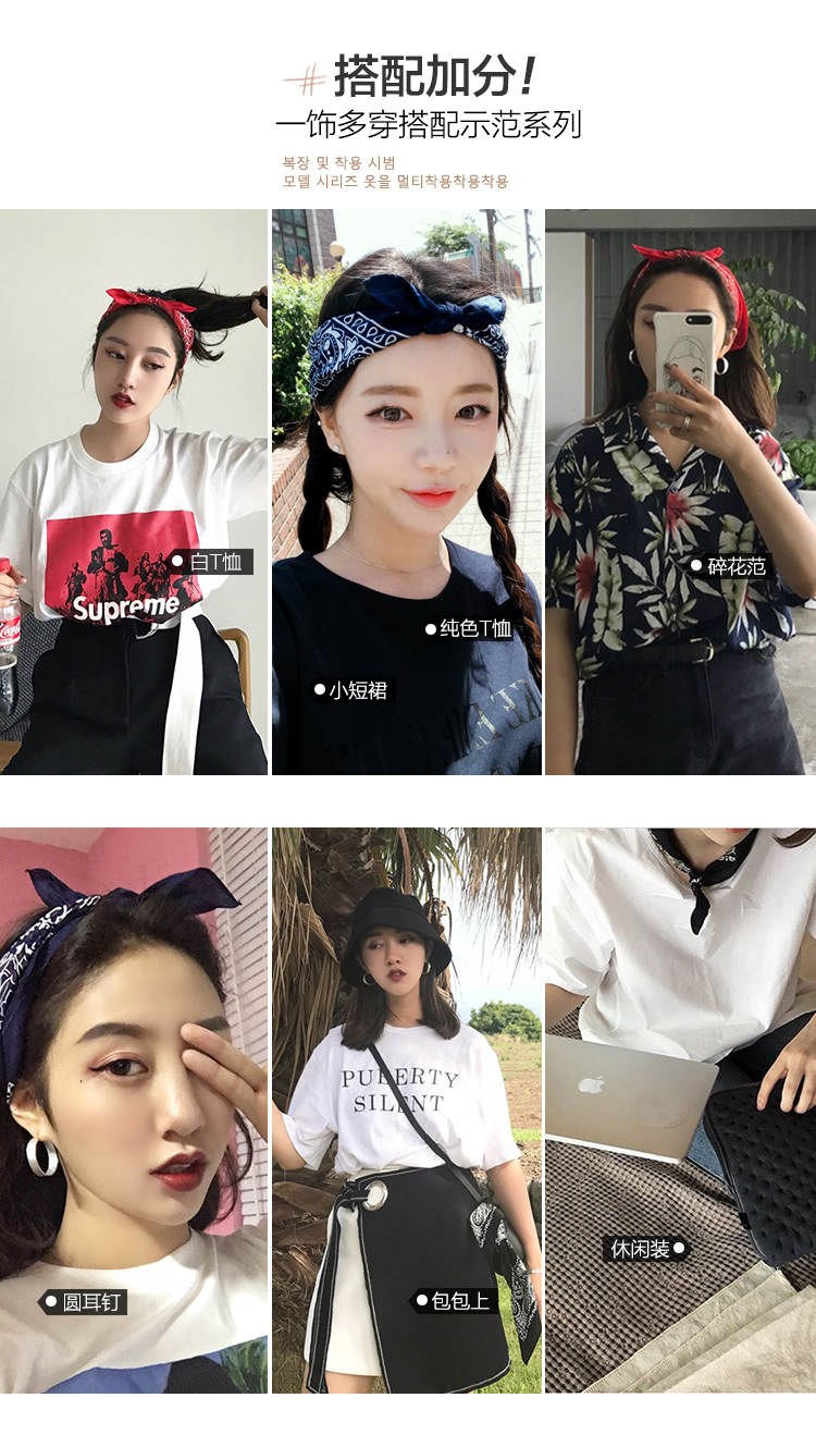韓國女生時尚頭帶百搭氣質潮人頭巾韓版嘻哈街舞圍脖戶外發帶個性1入