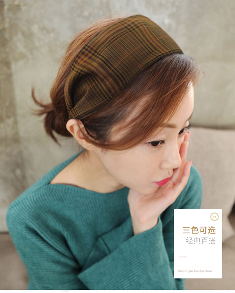 韓國寬邊千鳥格頭箍發飾日韓版頭飾氣質森女甜美成人2017春夏發箍1入