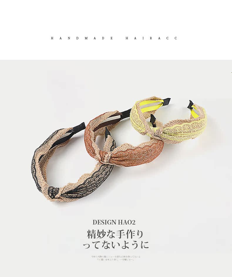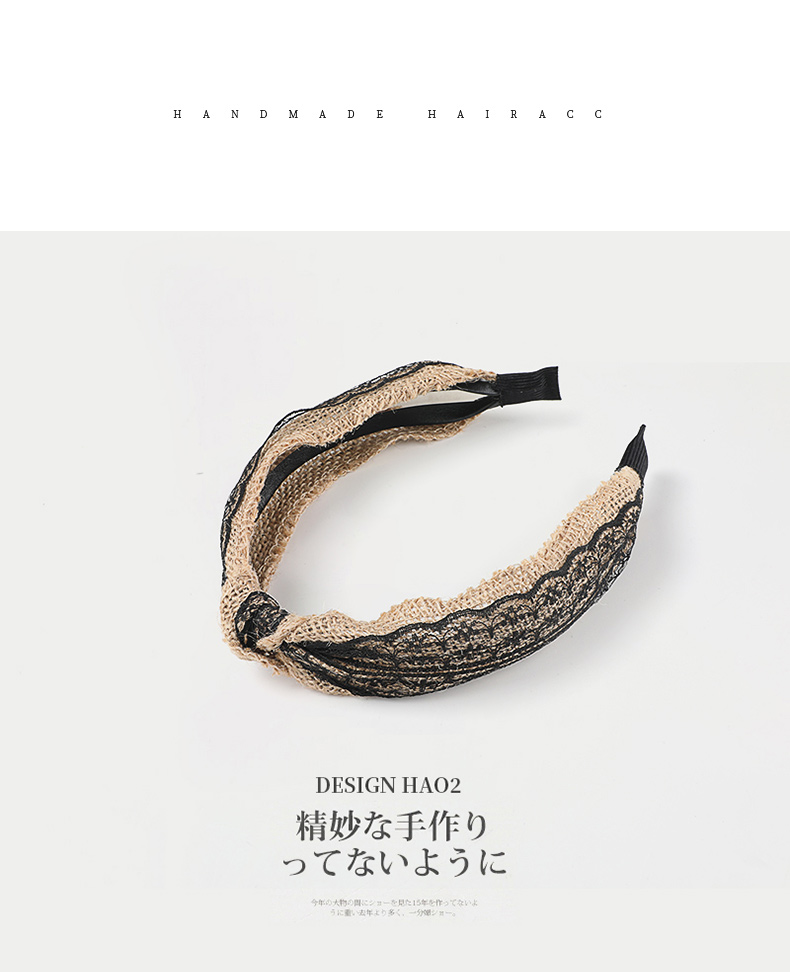 韓式淑女時尚發飾 紗網雙層拉菲草打結發箍復古清新氣質網紅頭飾1入