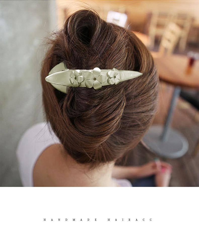 韓國女生氣質簡約頭飾 花朵長款發夾淑女盤發抓夾橫夾ins百搭發飾1入