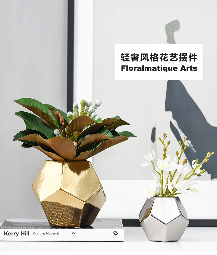 北歐現代簡約輕奢幾何花瓶茶幾餐桌花藝擺件樣板房售樓處軟裝裝飾1入