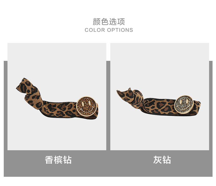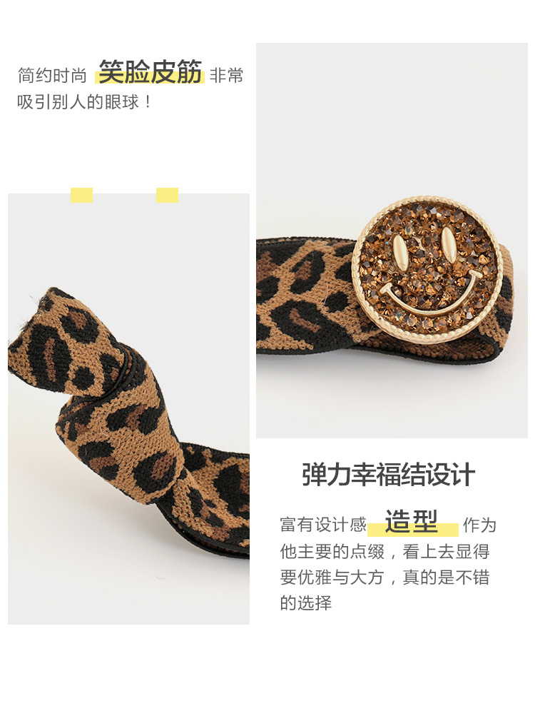 韓國水鉆甜美笑臉豹紋頭繩皮筋個性百搭發圈皮套發繩成人發飾淑女1入
