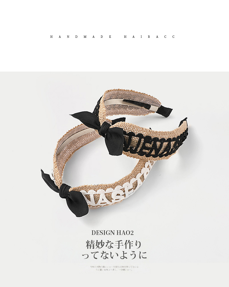 韓國女生氣質簡約頭飾 蝴蝶結拉菲草打結發箍外出百搭清新束發箍1入