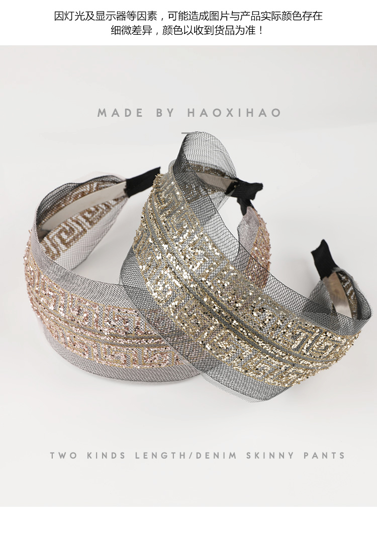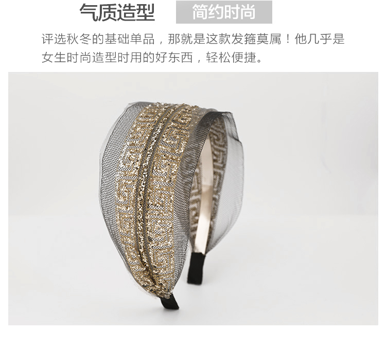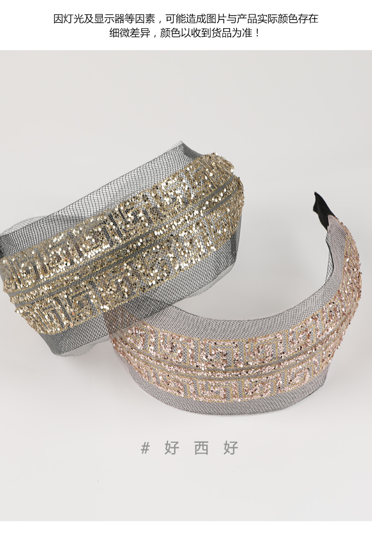 韓國ins時尚發飾女生頭飾 日韓潮流亮片紗網寬邊發箍個性淑女頭箍1入