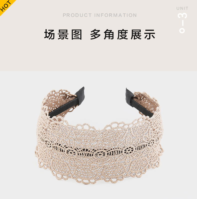韓國寬邊發箍日韓版簡約發飾花邊蕾絲甜美小清新頭箍頭飾淑女夏款1入