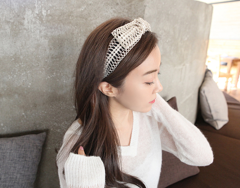 韓國蝴蝶結布藝鏤空發箍日韓版發飾頭飾簡約氣質淑女春夏發卡甜美1入